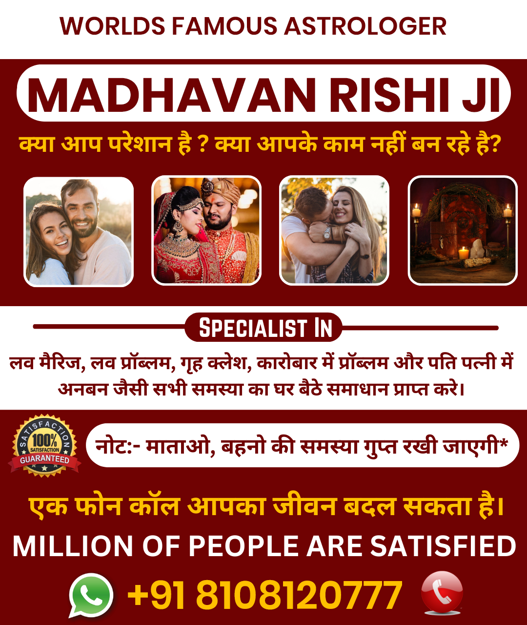 Worlds Famous Astrologer Madhavan Rishi Ji is also famous for: Love, Marriage, Divorce, Relationship, Kundali & Vastu Specialist