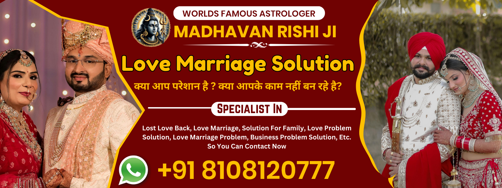 Many thanks for it. Worlds Famous Astrologer Madhavan Rishi Ji. I was able to overcome my challenges in a love marriage with your guidance. Thanks to your guidance, I recently got married to my